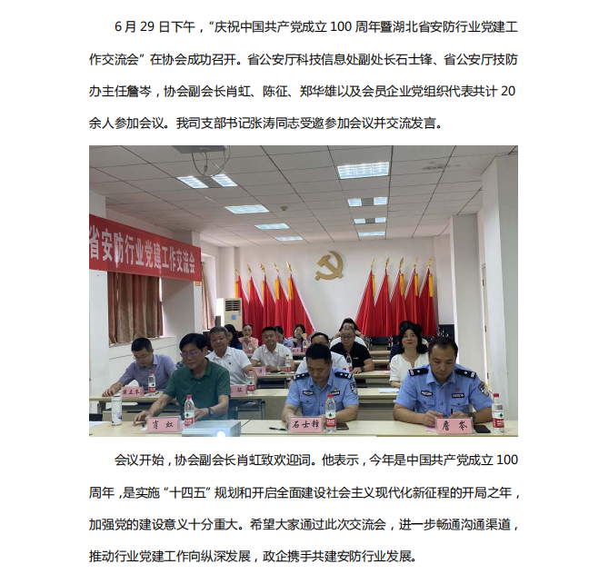慶祝建黨100周年暨湖北省安防行業黨建工作交流會成功召開