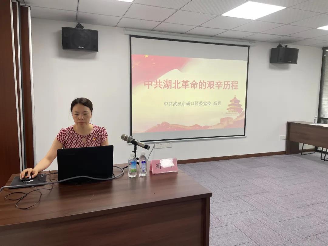 最后由區(qū)委黨校講師高晉作專題輔導報告。高老師為我們講授了《中共湖北革命的艱辛歷程》,以“我們黨的一百年,是不忘初心、牢記使命的一百年,是篳路藍縷、奠基立業(yè)的一百年,是創(chuàng)造輝煌、開辟未來的一百年”為開端,內(nèi)容生動詳盡,為我們再現(xiàn)了一段輝煌的百年革命歷史。