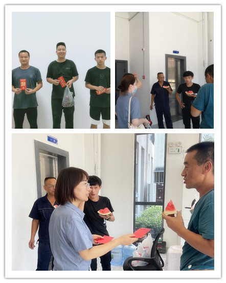 慰問中,黨支部組織委員、十堰分公司負(fù)責(zé)人代表公司感謝項(xiàng)目一線職工們的辛勤付出,叮囑大家要做好防暑降溫工作,要求項(xiàng)目現(xiàn)場(chǎng)同事要結(jié)合高溫期間的施工生產(chǎn)特點(diǎn)組織好施工工作,同時(shí)關(guān)心職工身體健康和保障安全,切實(shí)做好各項(xiàng)施工監(jiān)督檢查等工作。